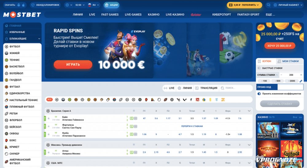 - 🏆 Широкий выбор спортивных событий: футбол, хоккей, баскетбол, теннис, бокс, киберспорт;